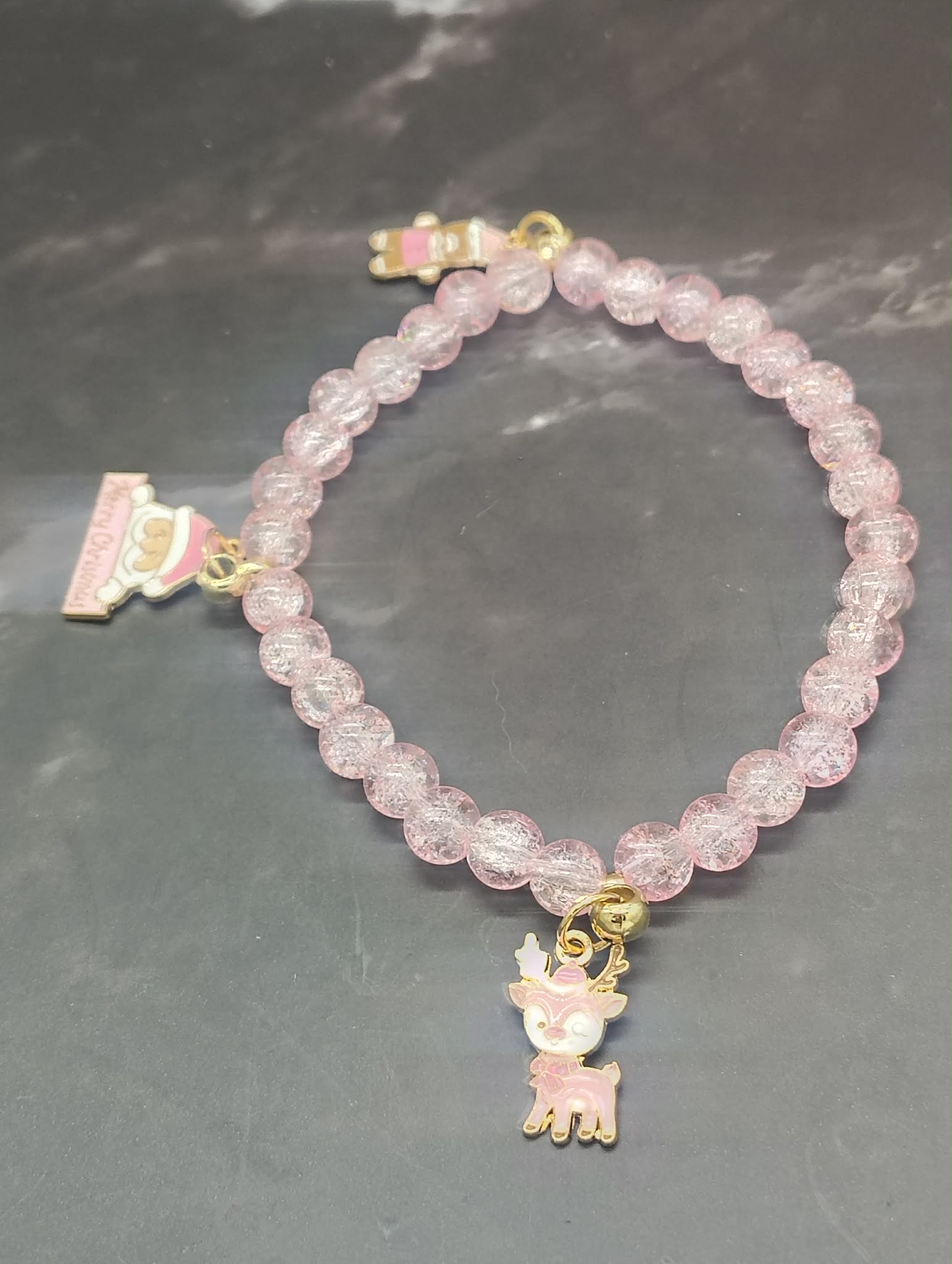 3pc stacked Crystal Pink Christmas Bracelet