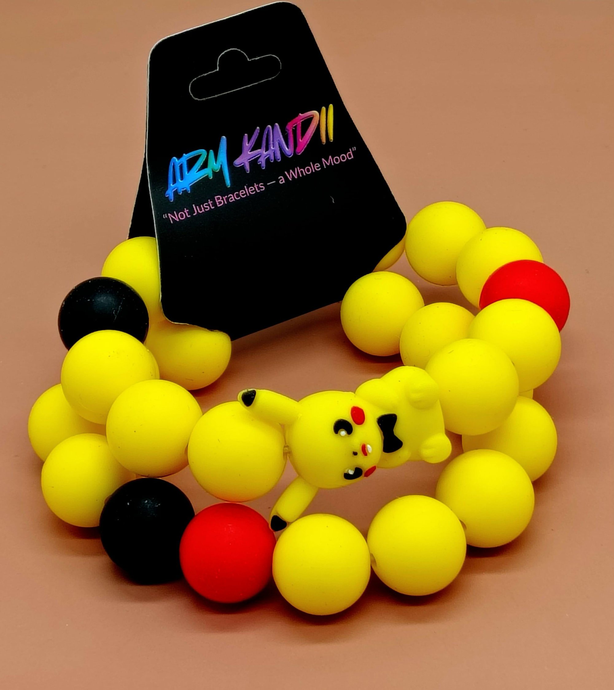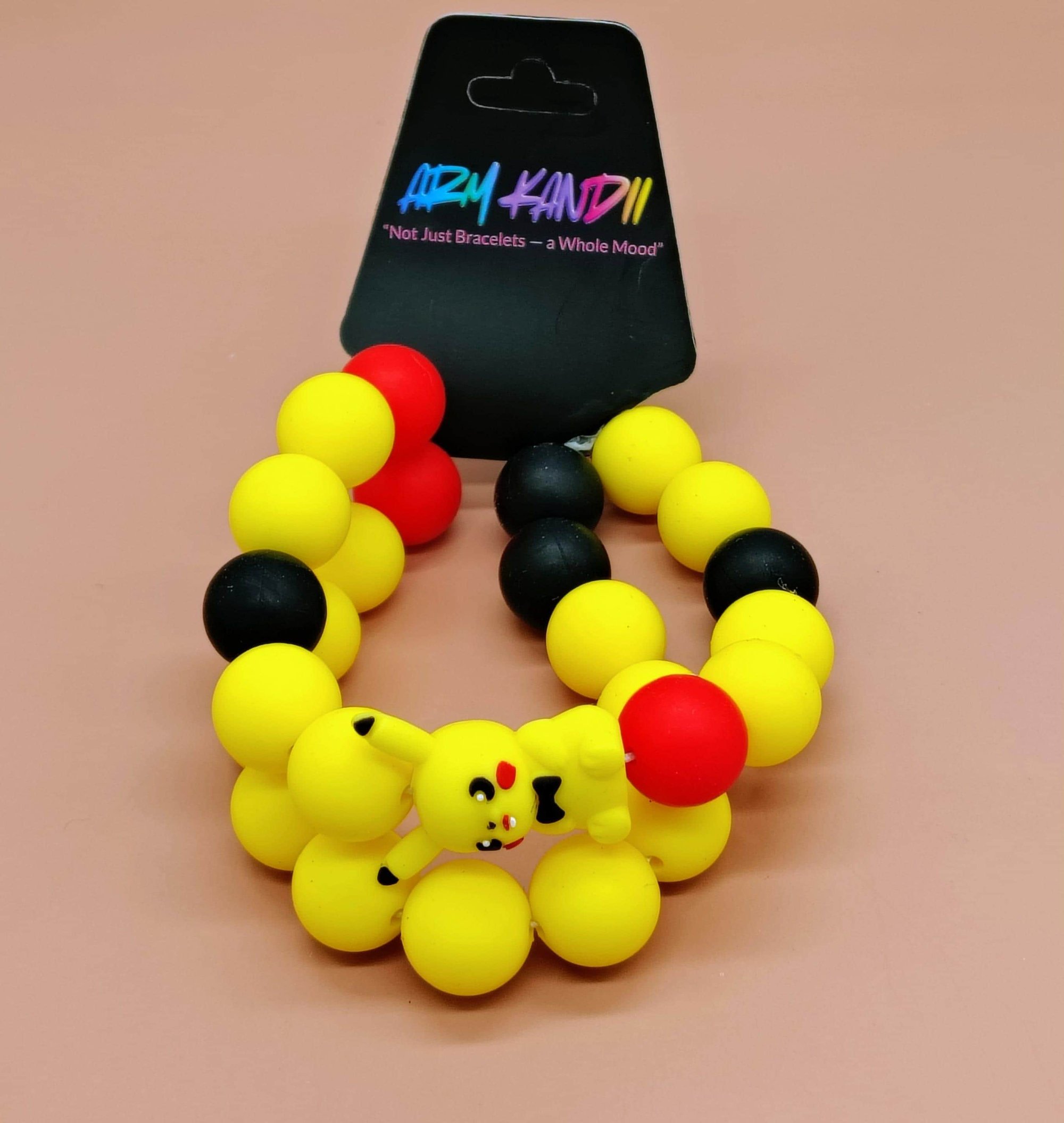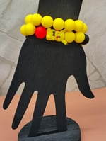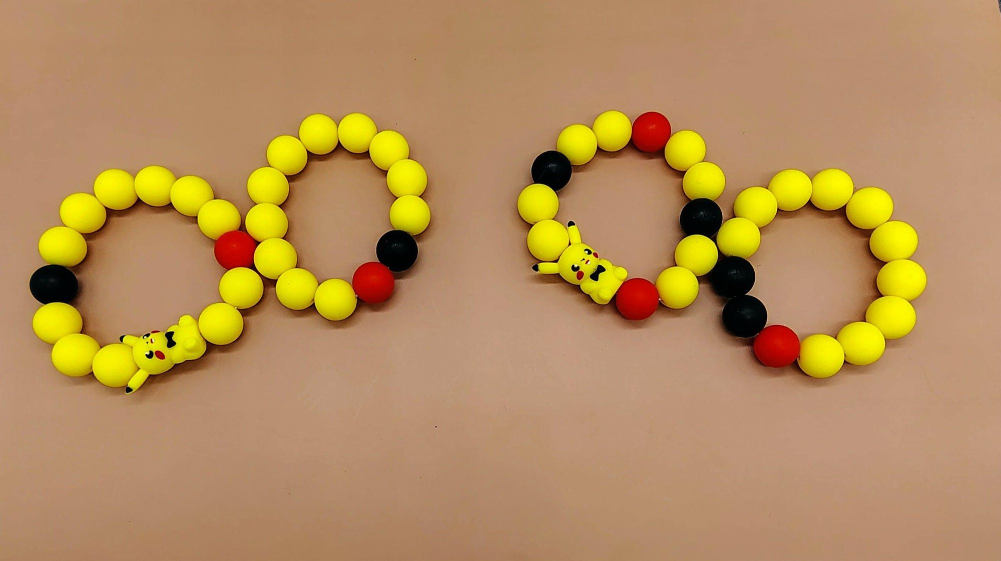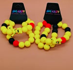 Cute yellow Anime Silicone Beaded Bracelet handcrafted by yours truly. Vivid bright colors and aweson for gifting. Two different bracelet stacks available. Each bracelet is between 7-8 inches. Easy to clean.