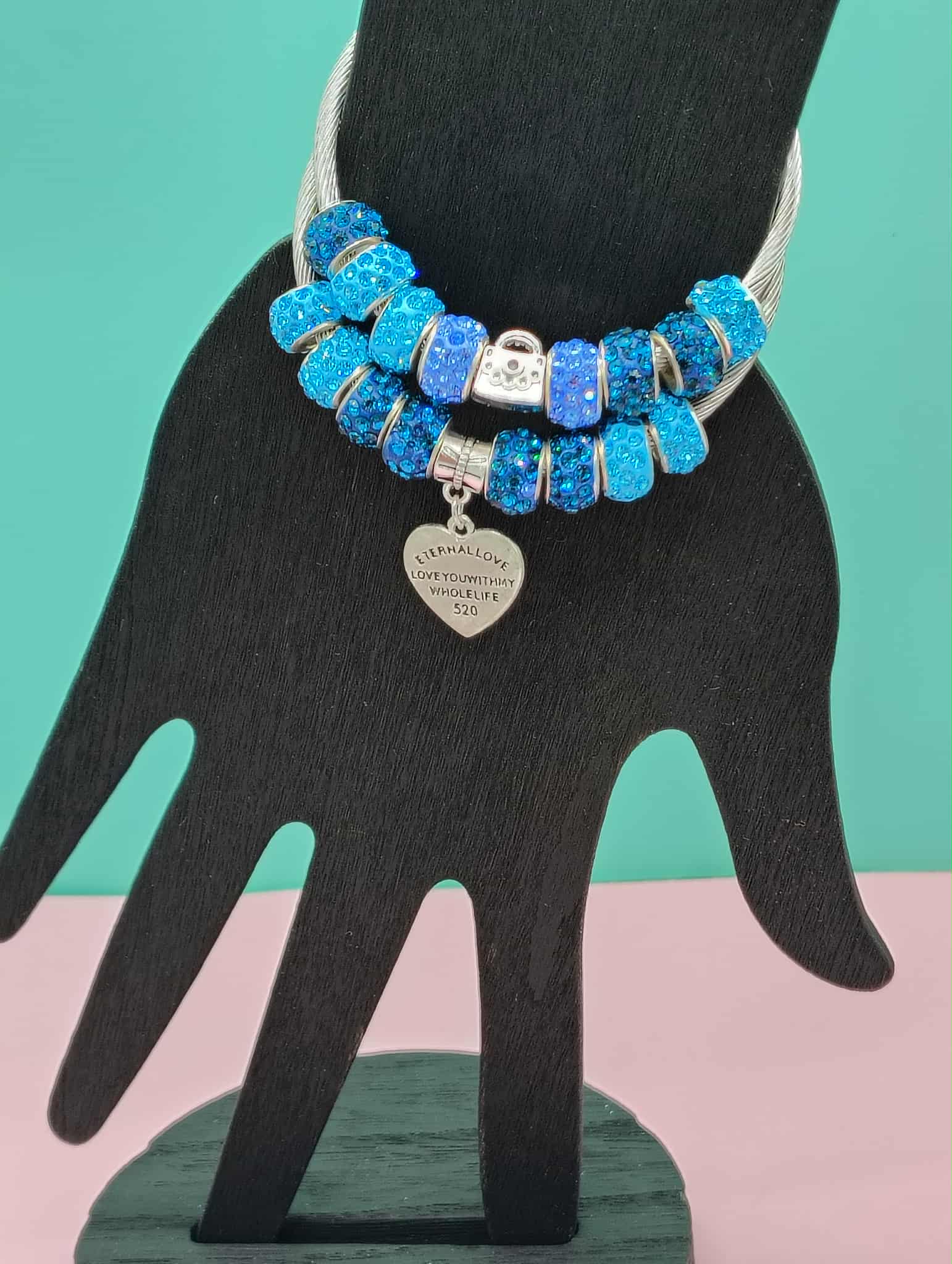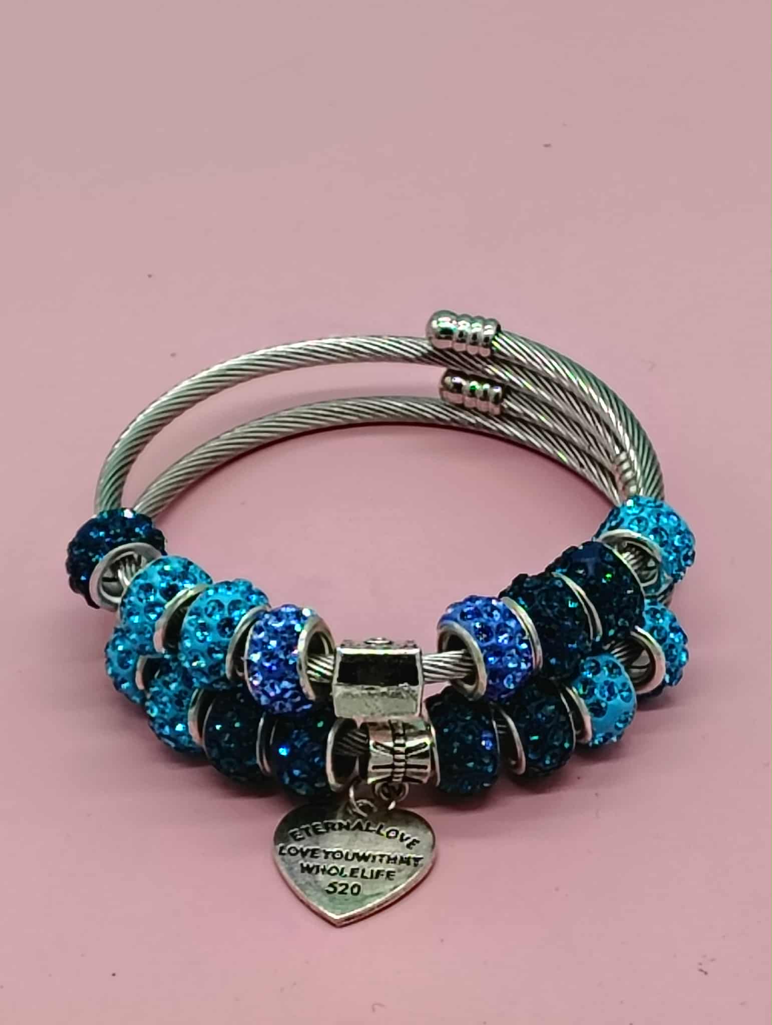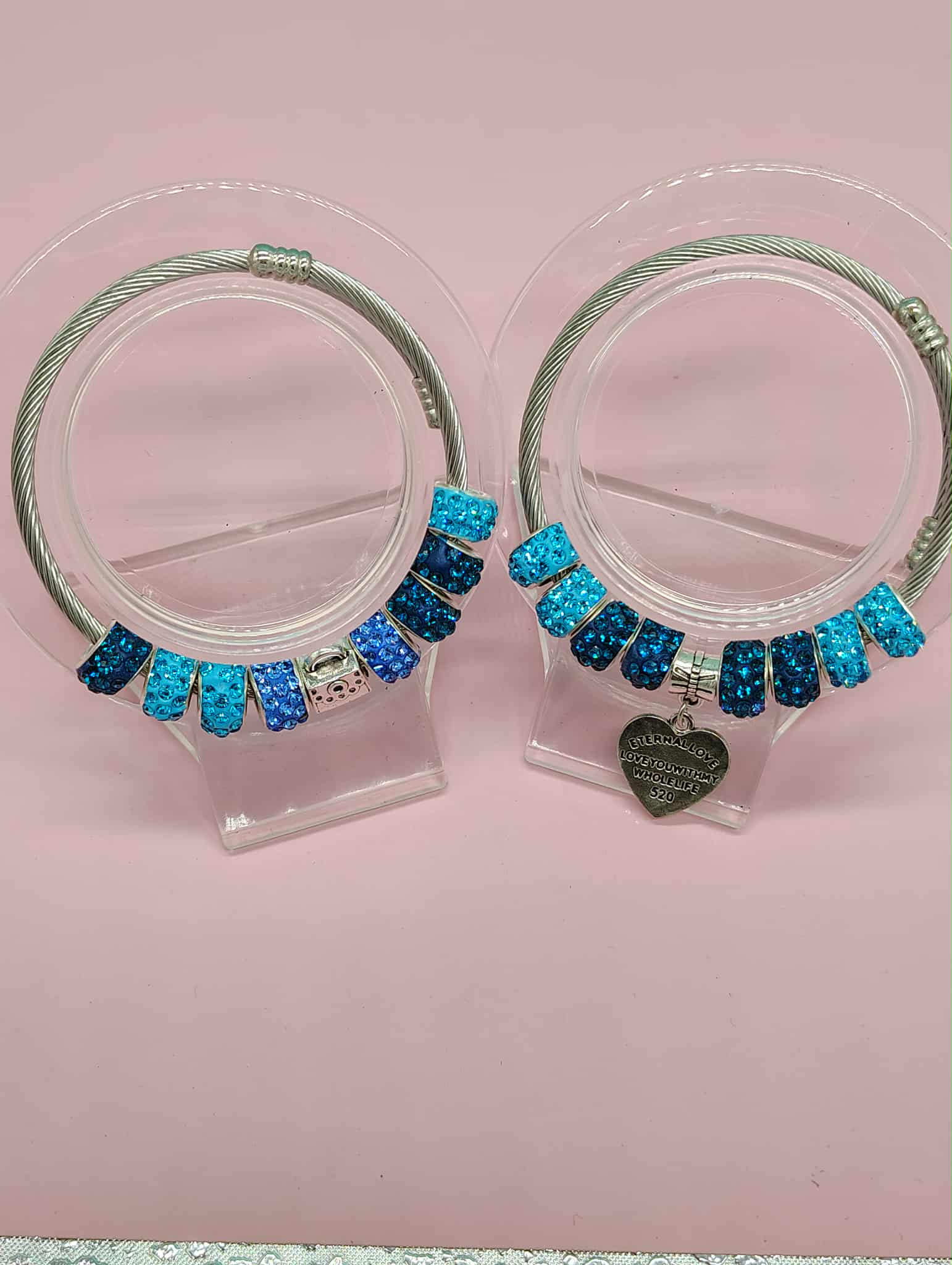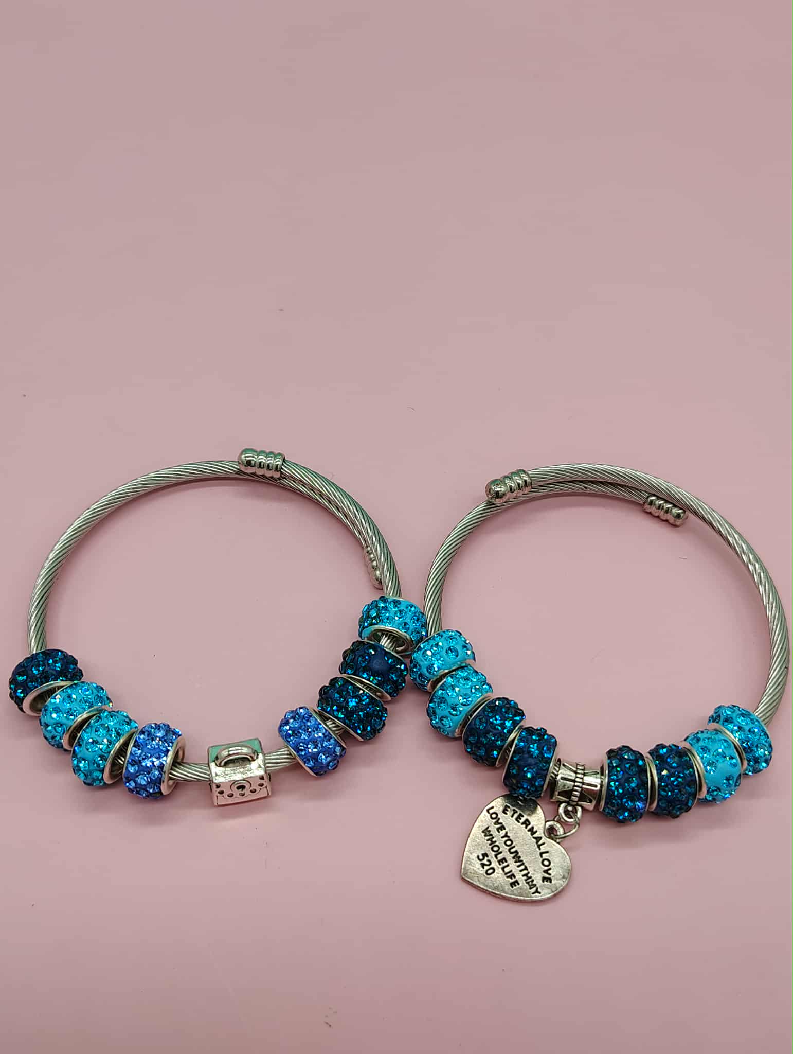 Elevate your accessory game with the Blue Chic Diva Charm Set, a stunning duo of bangles that effortlessly blend elegance and whimsy. Each bangle is adorned with enchanting blue glitter accent beads that catch the light beautifully, creating a mesmerizing sparkle with every movement. The set features charming pendants, including an adorable purse and a heartfelt love charm inscribed with the touching phrase, "Eternal Love. Love you with my whole life," making it a perfect gift for someone special or a delightful treat for yourself. Designed with an adjustable wire cuff, these bangles ensure a comfortable fit for any wrist size, allowing you to showcase your unique style with ease. Whether you're dressing up for a night out or adding a touch of glamour to your everyday look, the Blue Chic Diva Charm Set is the ultimate expression of love and sophistication.