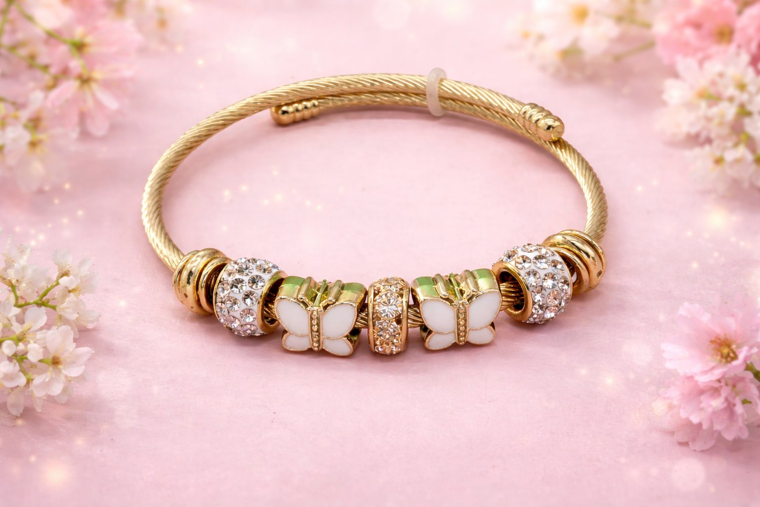 Butterfly Dreams Bracelet beautifully combines elegance and whimsy. Crafted with a luxurious gold-plated finish, this bracelet features a delightful array of gold and white beads that evoke the serene beauty of nature. Each bead is meticulously selected to create a harmonious blend of colors, making it a versatile addition to any outfit, whether you're dressing up for a special occasion or adding a touch of charm to your everyday look. The adjustable design ensures a perfect fit for any wrist size, while the lightweight construction allows for comfortable wear throughout the day. Embrace your inner butterfly and let your style take flight with this exquisite bracelet that promises to be a cherished piece in your jewelry collection.