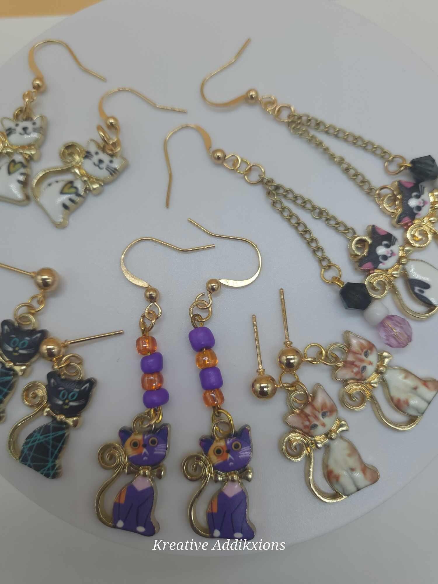 Elevate your accessory game with these charming cat earrings, perfect for animal lovers and fashion enthusiasts alike. Crafted with attention to detail, each earring features an adorable cat design adorned with a whimsical touch to any outfit. Lightweight and comfortable, they are ideal for everyday wear or special occasions. Make a statement and showcase your unique style with these delightful earrings that are sure to turn heads and spark conversations.