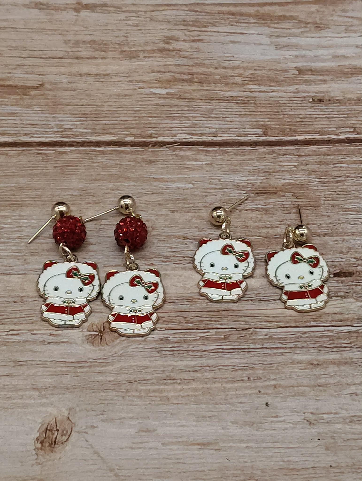 Cute Hello Kitty Christmas set includes a bracelet earrings and Chey Kain. 2 different styles available. The other 3 different styles of earrings sold separately. Get ready this christmas season with some hello kitty!!!!!!!!!!!!!