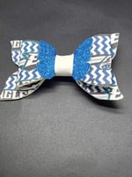 These hairbows serve as a vibrant declaration of team loyalty, all while adding a dash of style and fun to an outfit. Crafted with the Eagles' iconic blue , black and white colors, these accessories often feature the team's logo or mascot, making them instantly recognizable symbols of support. Perfect for game days, pep rallies, or any occasion where a fan wants to celebrate their team spirit. Beyond just being a fashion statement, this one of a kind hairbow can also foster a sense of belonging and pride among young fans, encouraging them to be part of the Eagles' community from an early age.