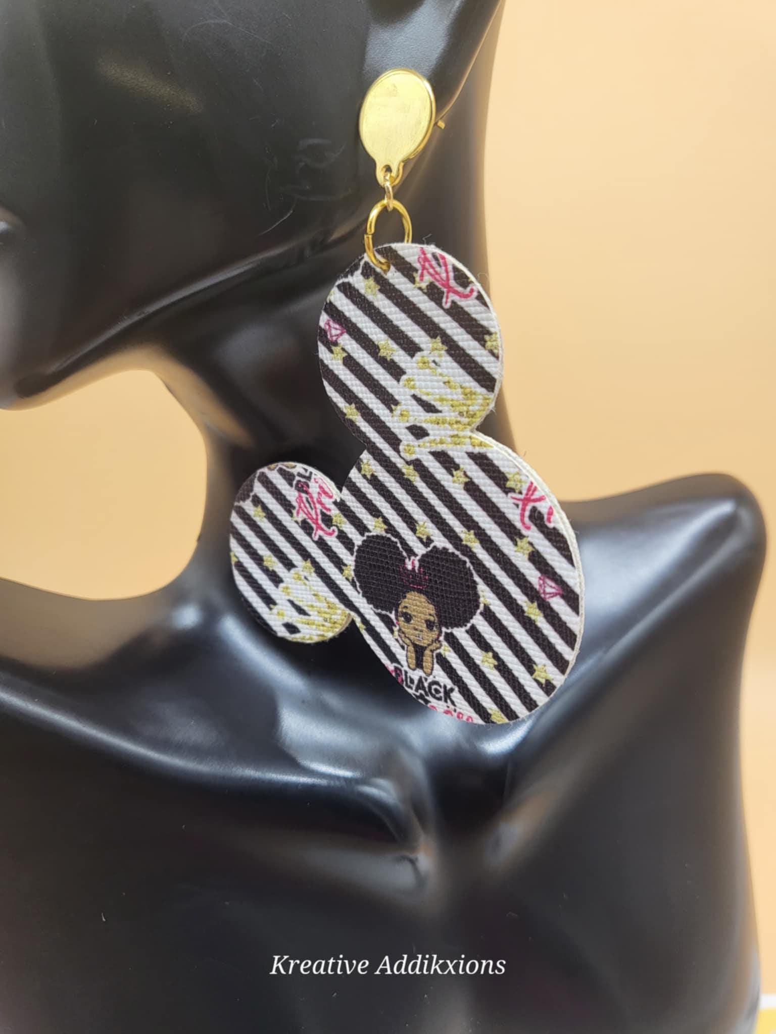 Handcrafted Black Princess Mickey Chic Faux Leather Earrings