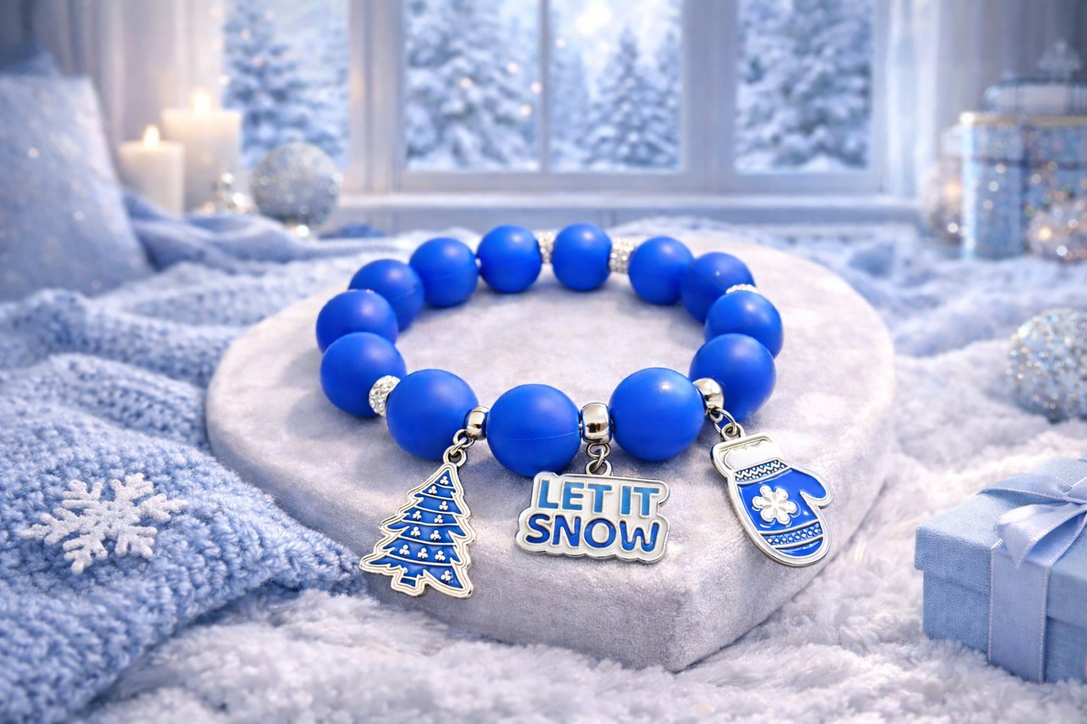 Wrap your wrist in winter magic with the Let It Snow Blue Charm Bracelet, a sparkling statement piece designed to bring cozy vibes and icy-blue elegance together. Featuring bold royal-blue silicone beads and shimmering rhinestone spacers, this bracelet is both playful and luxe — perfect for holiday season styling or year-round sparkle.