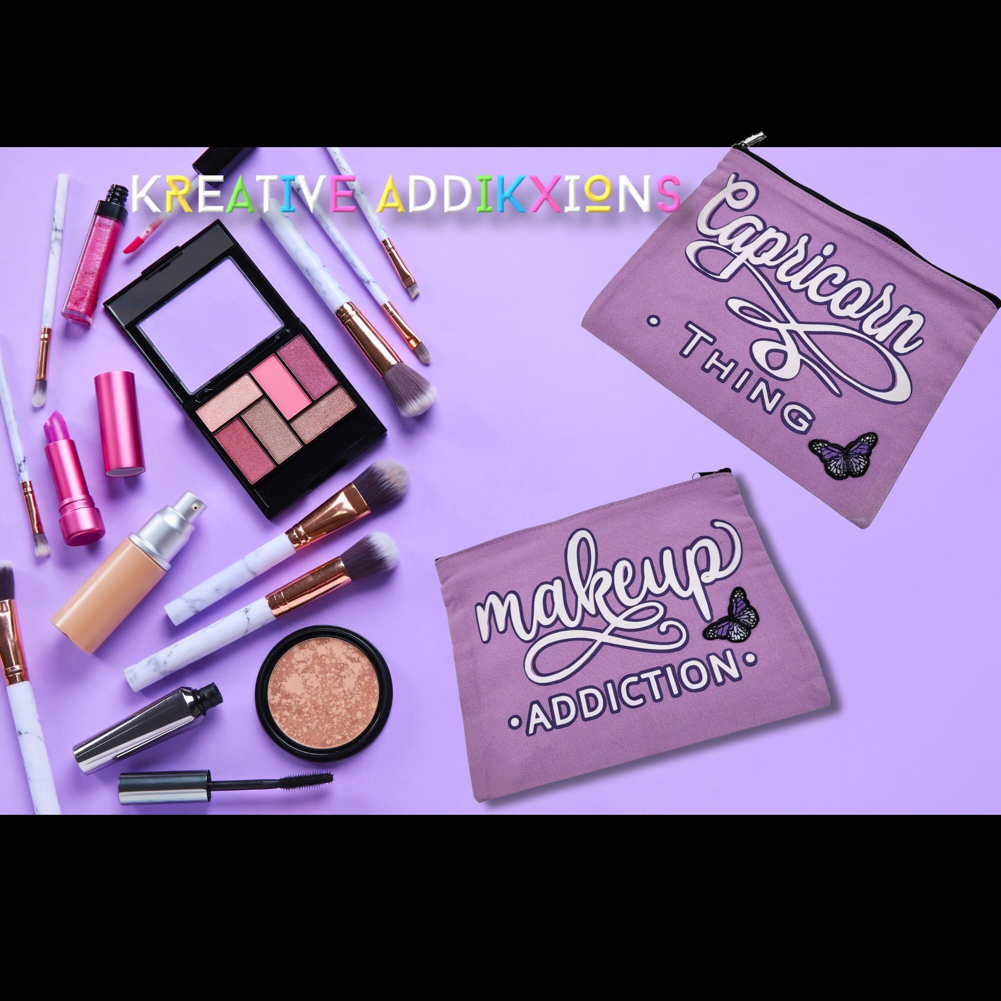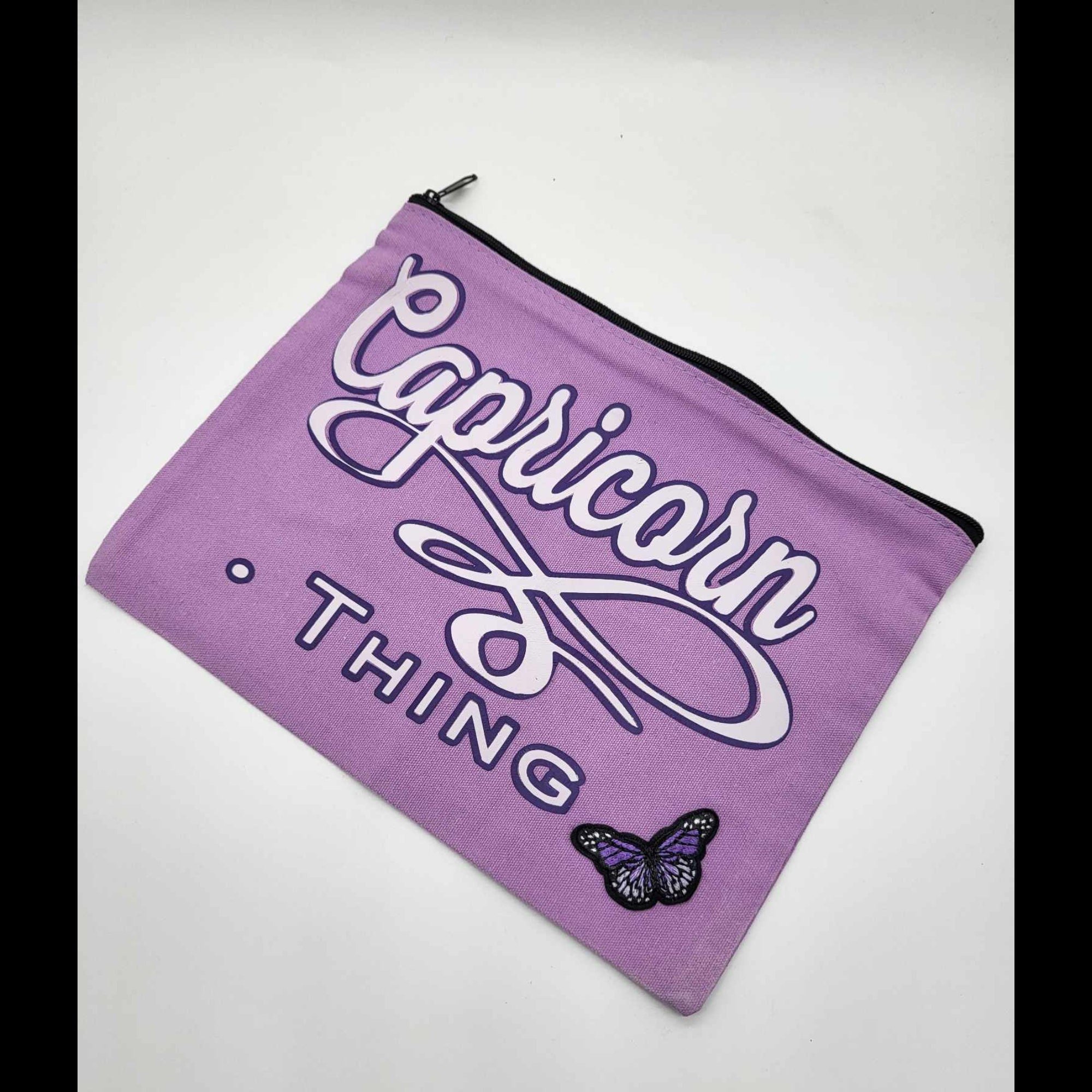 Designed by me exclusively for the makeup lovers. Capricorn zodiac sign that is!!!! Beautiful lavendar color makeup cosmetic bag as needed! Great for gifting or simply pampering yourself. The size is 9.25 x 6.89 Inch