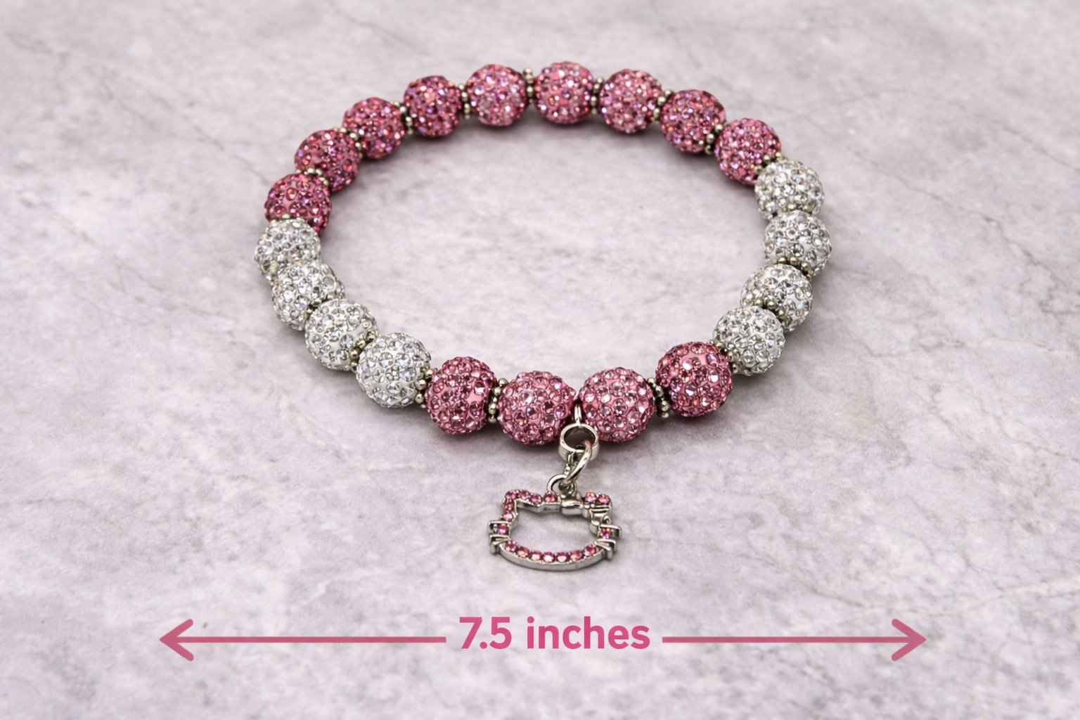 Add a pop of sparkle and sweetness to your everyday look with the Pink Ice Crystal Kitty Charm Bracelet. This dreamy stretch bracelet features shimmering pink and crystal rhinestone beads paired with a dainty Hello Kitty–inspired charm for the perfect mix of cute and glam.