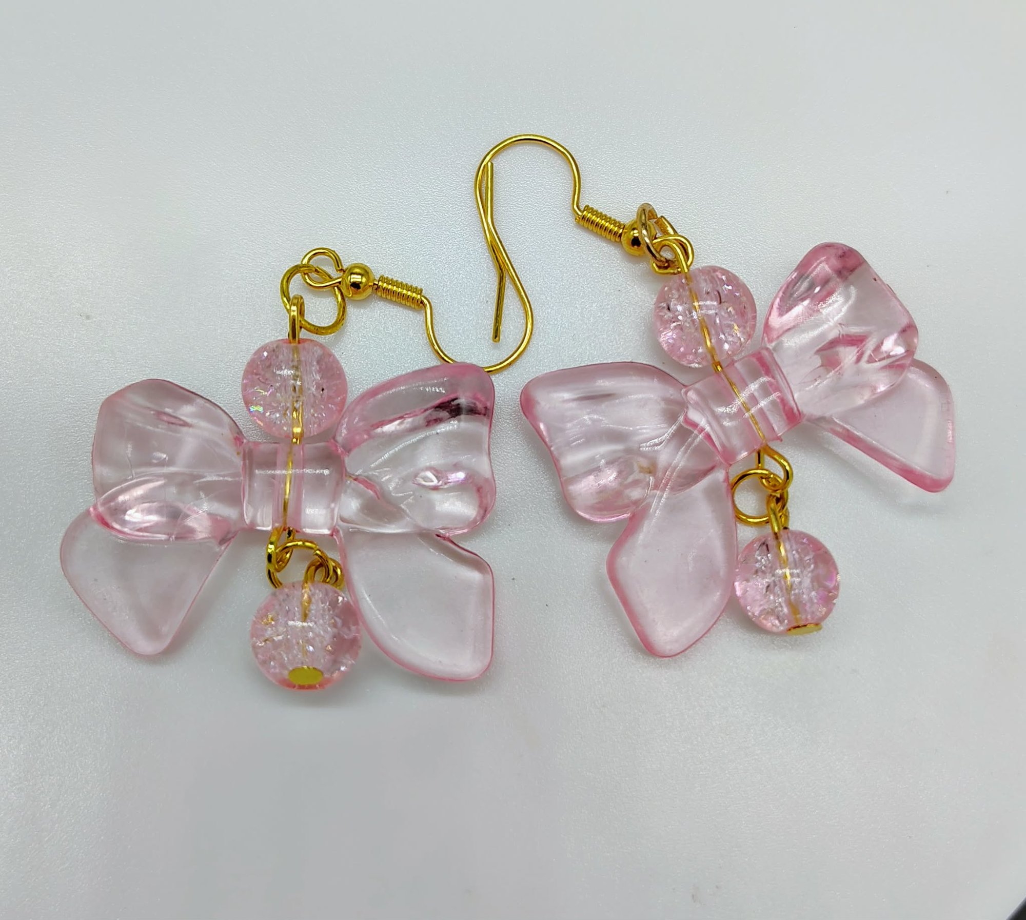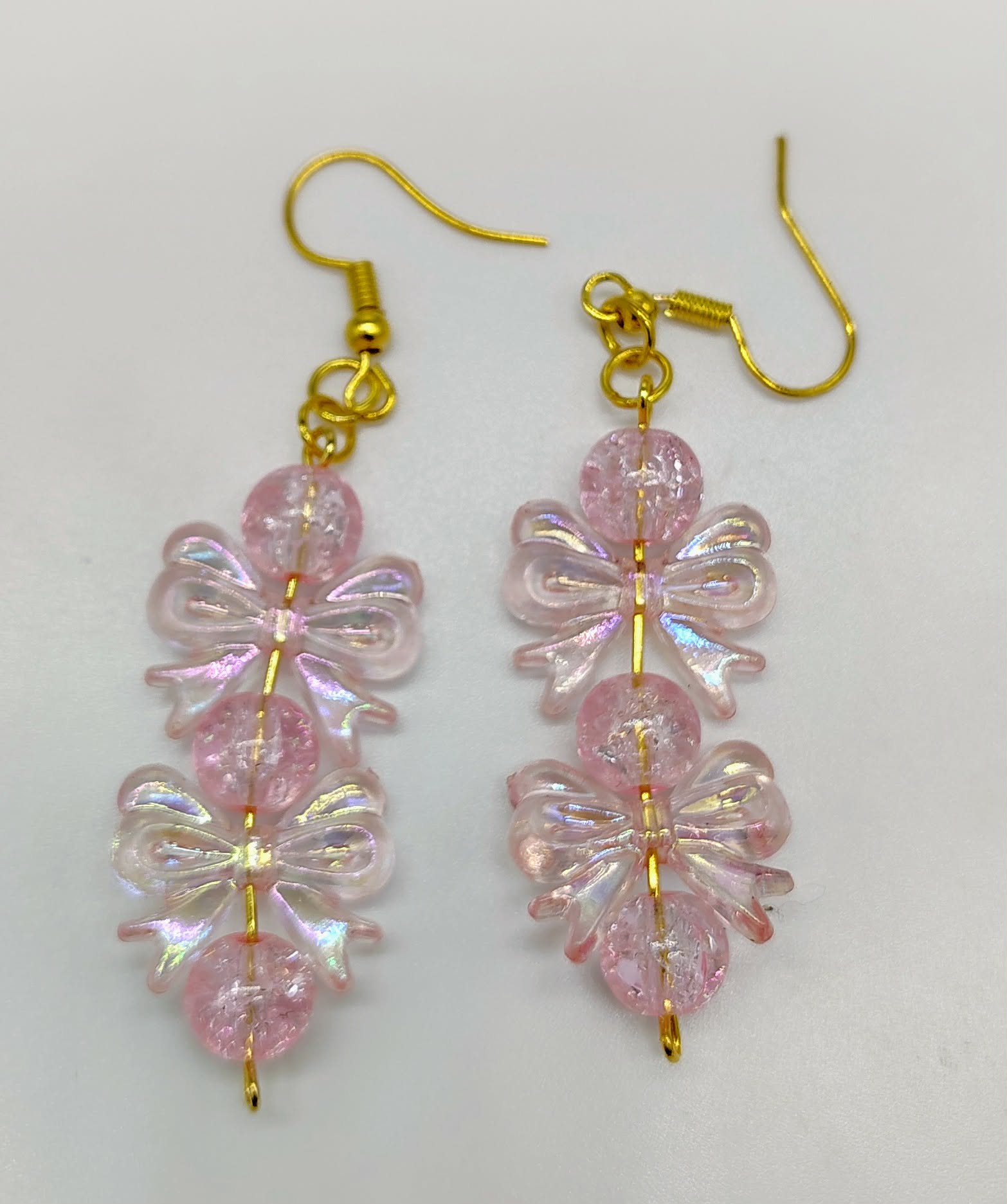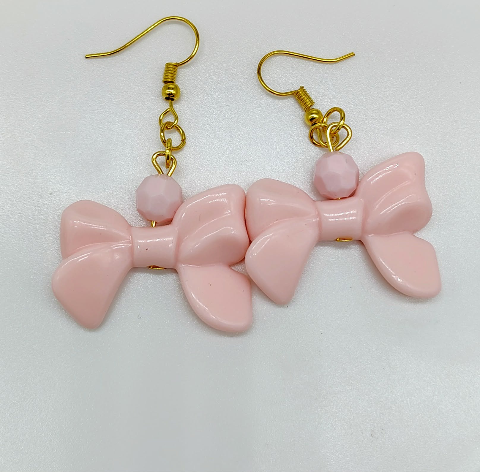 3 different styles of earrings. Handcrafted acrylic pink bows. Available to ship right away.