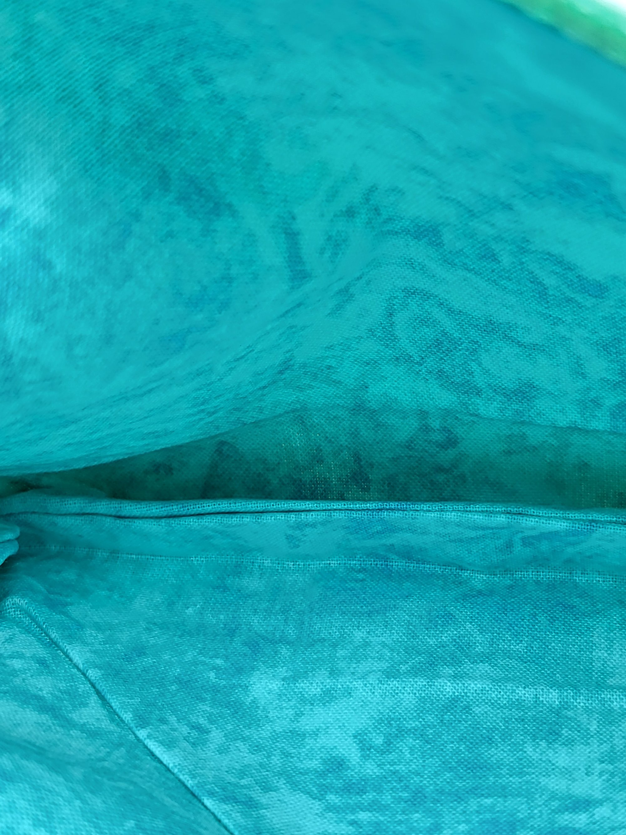 Exterior: Faux leather with teal & sea-green tie-dye on the front. Mint faux leather on the back