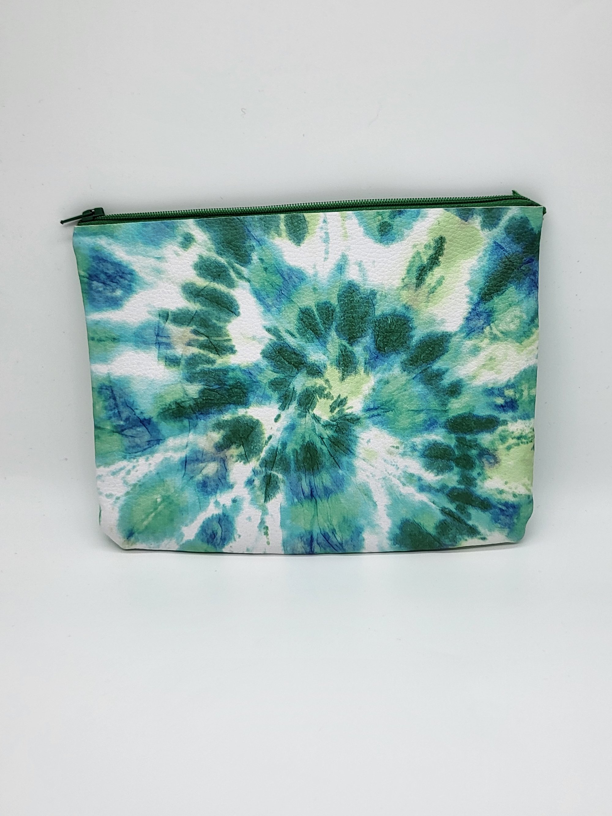 Soft, dreamy, and endlessly soothing — Seafoam Swirl captures the peaceful beauty of ocean waves meeting fresh spring greens. This handcrafted cosmetic pouch features a flowing teal and sea-green tie-dye front, creating a tranquil watercolor effect that feels both modern and organic.