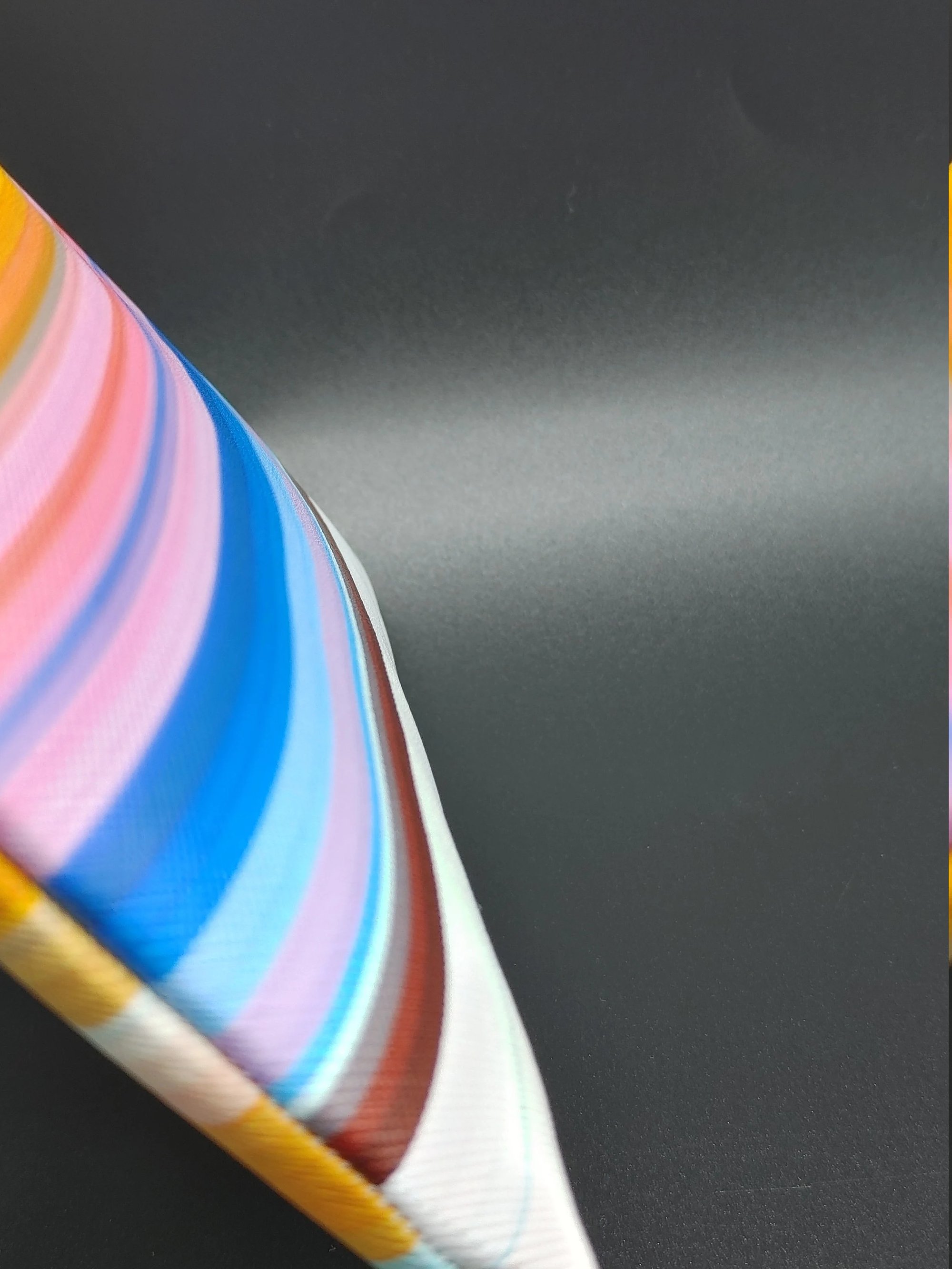 Exterior: Colorful striped faux leather